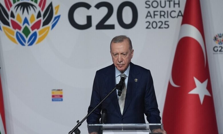 وقال أردوغان للصحفيين، أثناء عودته من جنوب إفريقيا على متن الطائرة الرئاسية: “نحن نعمل منذ فترة طويلة على وضع أساس لوقف الحرب في أوكرانيا، وجرت لنا مناقشات متكررة مع الرئيس الأمريكي دونالد ترامب حول رؤيتنا للوضع هناك. نؤمن بأن السلام العادل لا يمكن أن يُبنى على وجود طرف خاسر، وأن الطريق الوحيد إليه هو الحوار واللقاءات المباشرة. اليوم، يُطرح السؤال: هل يمكن للخطة التي قدّمتها الولايات المتحدة أن تشكل أساسا لتسوية سلمية؟ الجواب: نعم، هذا ممكن. لكن كيف؟ هذا ما يجب العمل عليه”.