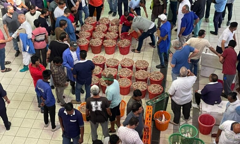 وبيّن أن حصيلة الصيد خلال الـ24 ساعة الماضية بلغت نحو 8 أطنان من الروبيان، و3 أطنان من الزبيدي، لافتاً إلى أن سعر سلة الروبيان «الشحامية» بلغ 20 ديناراً، بينما تراوح سعر سلة «أم نغيرة» بين 47 و60 ديناراً في سوقي شرق والفحيحيل. وأوضح أن مزاد الأسماك في الفحيحيل يُعقد في الثامنة صباحاً، بينما يُقام في سوق شرق بعد صلاة العصر، وشهد المزادان إقبالاً كبيراً من المواطنين والمستهلكين.