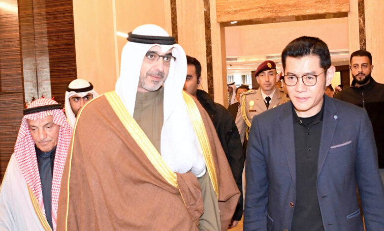 وتشكلت بعثة الشرف المرافقة لجلالته من الديوان الأميري برئاسة المستشار بالديوان الأميري محمد عبدالله ابوالحسن.