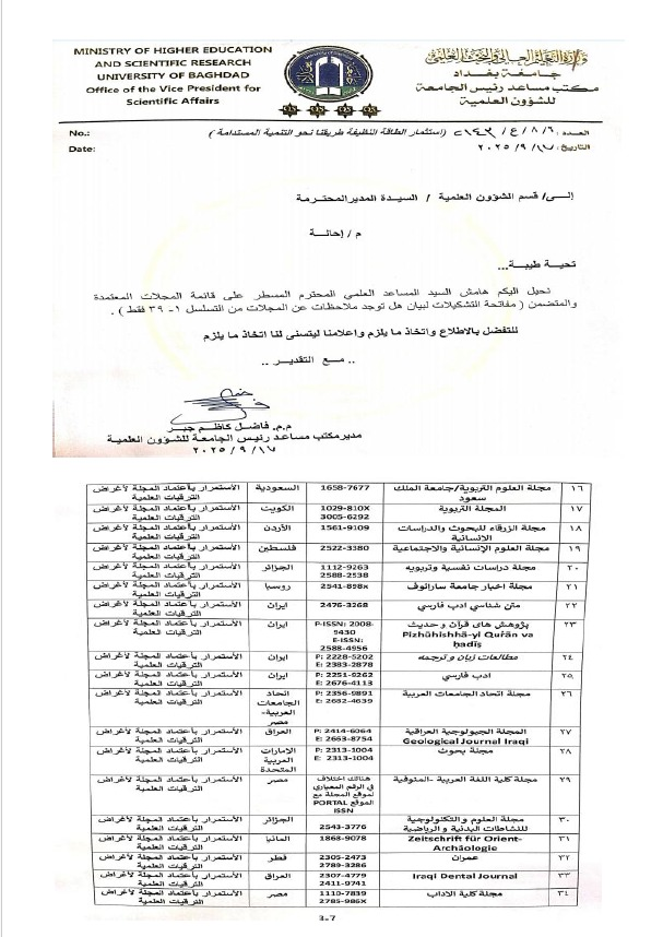 جامعة بغداد تجدد الثقة في مجلة بحوث للترقيات العلمية