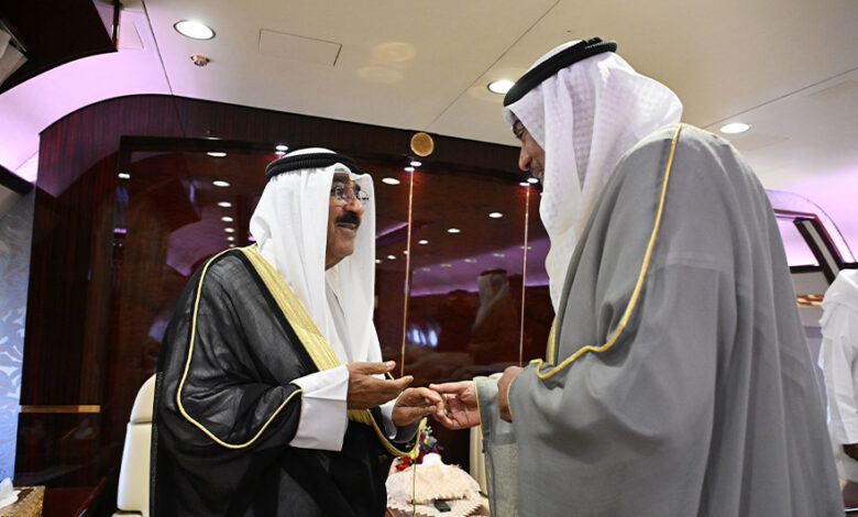 هذا ويرافق سموه وفد رسمي يضم كلا من وزير الدفاع ووزير الداخلية بالإنابة الشيخ عبدالله علي عبدالله السالم الصباح، ووزير الخارجية عبدالله علي اليحيا، وكبار المسؤولين بالدولة.