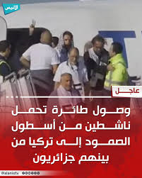 هبطت في مطار إسطنبول، اليوم السبت، طائرة تابعة للخطوط الجوية التركية تقل ناشطين من أسطول الصمود العالمي، الذين تعرضوا للهجوم والاحتجاز من قبل إسرائيل في المياه الدولية.
